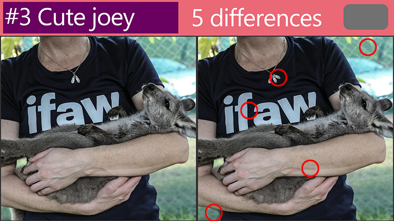 Revealing the answers :'Spot the Difference: How are these cute joey pictures different?'