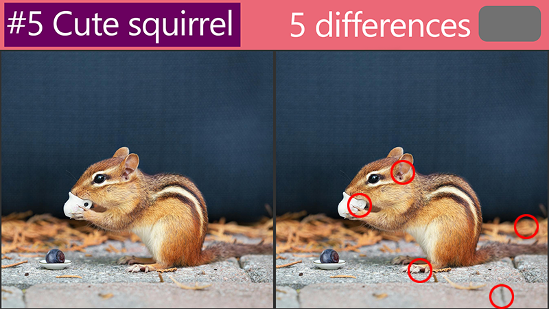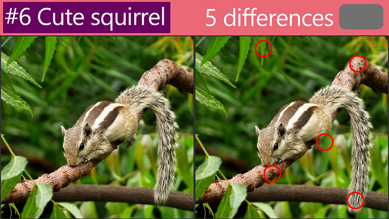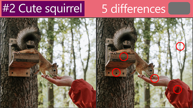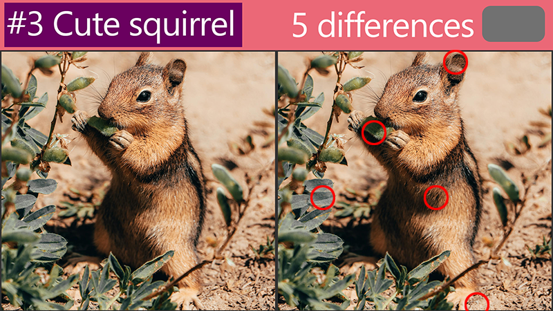 Revealing the answers :'Spot the Difference: How are these cute squirrel pictures different?'