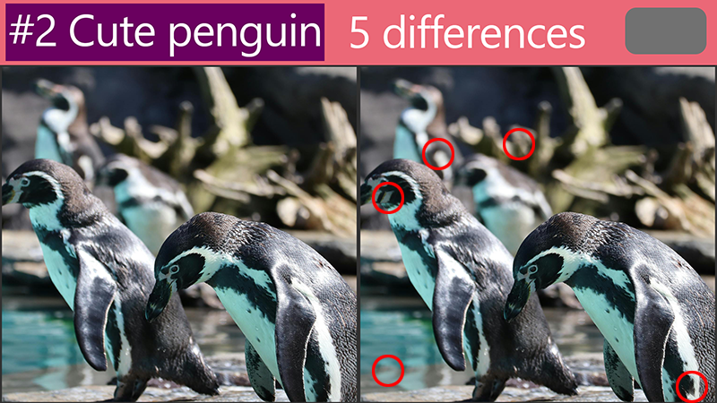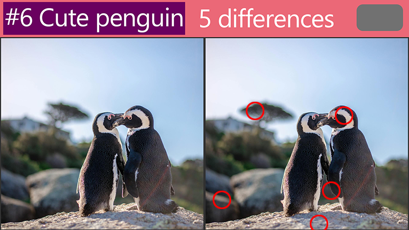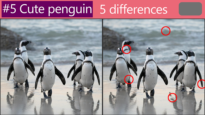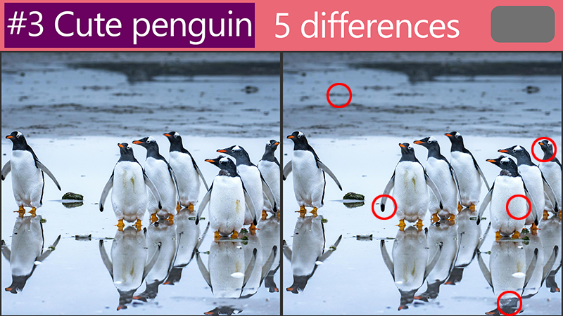 Tricky Picture Puzzle Revealing the answers :'Spot the Difference: How are these cute penguin pictures different?' by Quiz. Correct 2024. 4. 13. If you don't know what the puzzle is yet before you check out the answer, check out the video below. It's time to reveal the answers to our 'Spot the Difference: How are these cute penguin pictures different?' challenge! #1 #2 #3 #4 #5 #6 Are you satisfied? Please look forward to a better quiz. 공유하기 게시글 관리 Quiz. Correct 'Tricky Picture Puzzle' 카테고리의 다른 글 Revealing the answers :'Spot the Difference: How are these cute joey pictures different?' (0) 2024.04.19 Revealing the answers :'Spot the Difference: How are these cute hamster pictures different?' (0) 2024.04.17 Revealing the answers :'Spot the difference:Test your observation skills while looking at these adorable fennec fox pictures' (0) 2024.04.11 Revealing the answers : [Cute rabbit]Tricky Picture Puzzle (0) 2024.04.09 Revealing the answers : [cute kitten]Tricky Picture Puzzle (0) 2024.04.07 관련글 Revealing the answers :'Spot the Difference: How are these cute joey pictures different?' Revealing the answers :'Spot the Difference: How are these cute hamster pictures different?' Revealing the answers :'Spot the difference:Test your observation skills while looking at these adorable fennec fox pictures' Revealing the answers : [Cute rabbit]Tricky Picture Puzzle