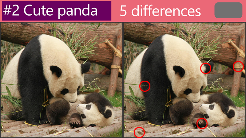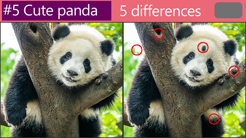 Revealing the answers :'Spot the Difference: How are these cute panda pictures different?'